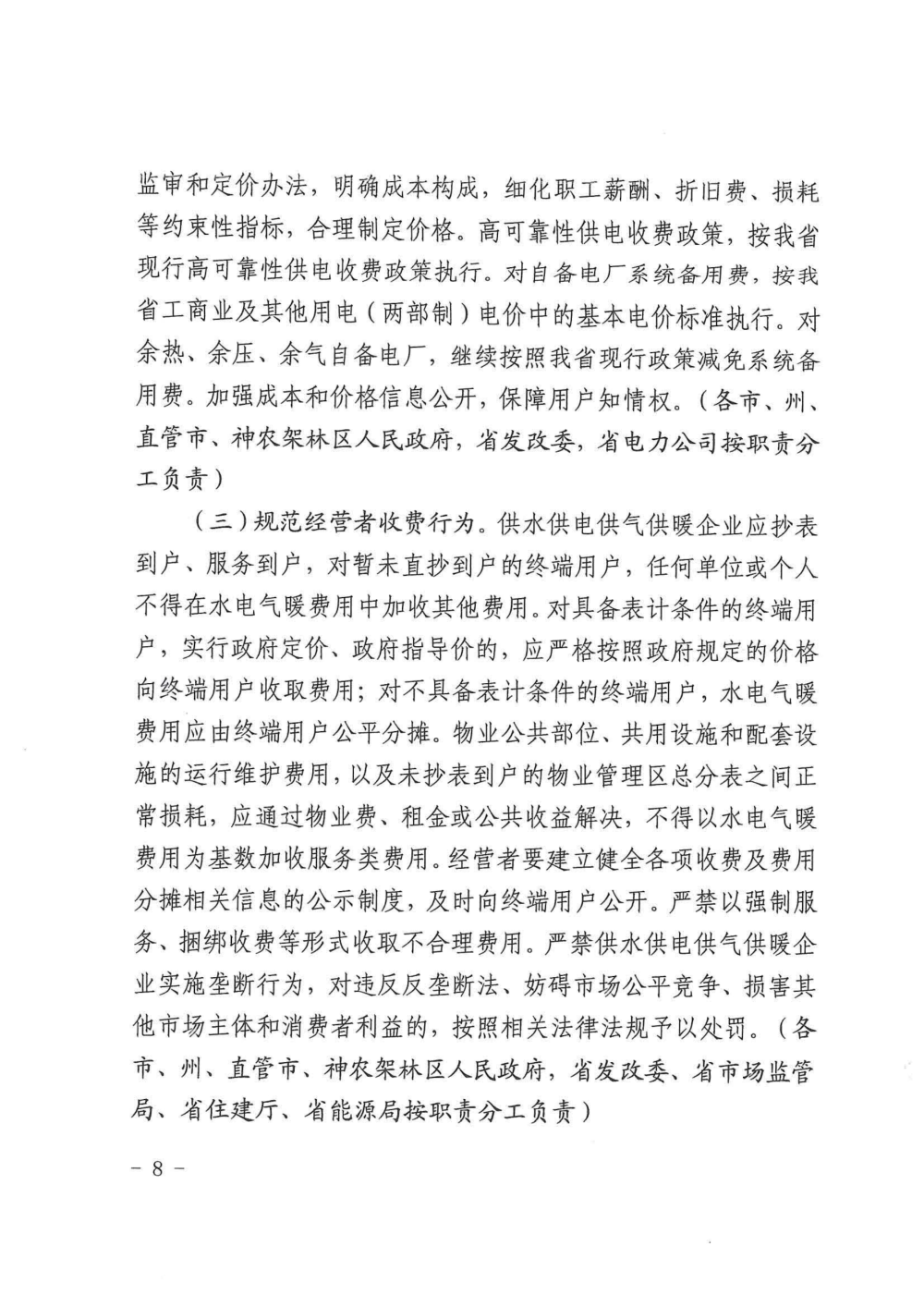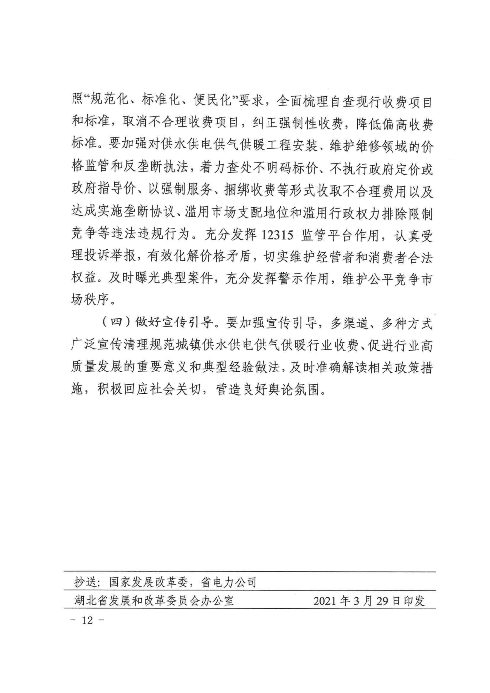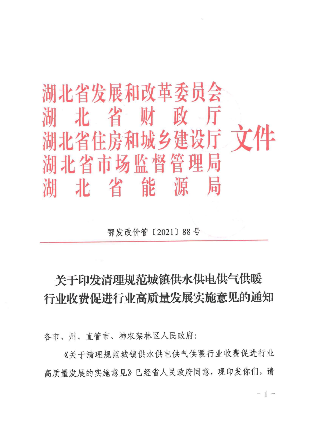 關于印發清理規范城鎮供水供電供氣供暖行業收費促進行業高質量發展實施意見的通知