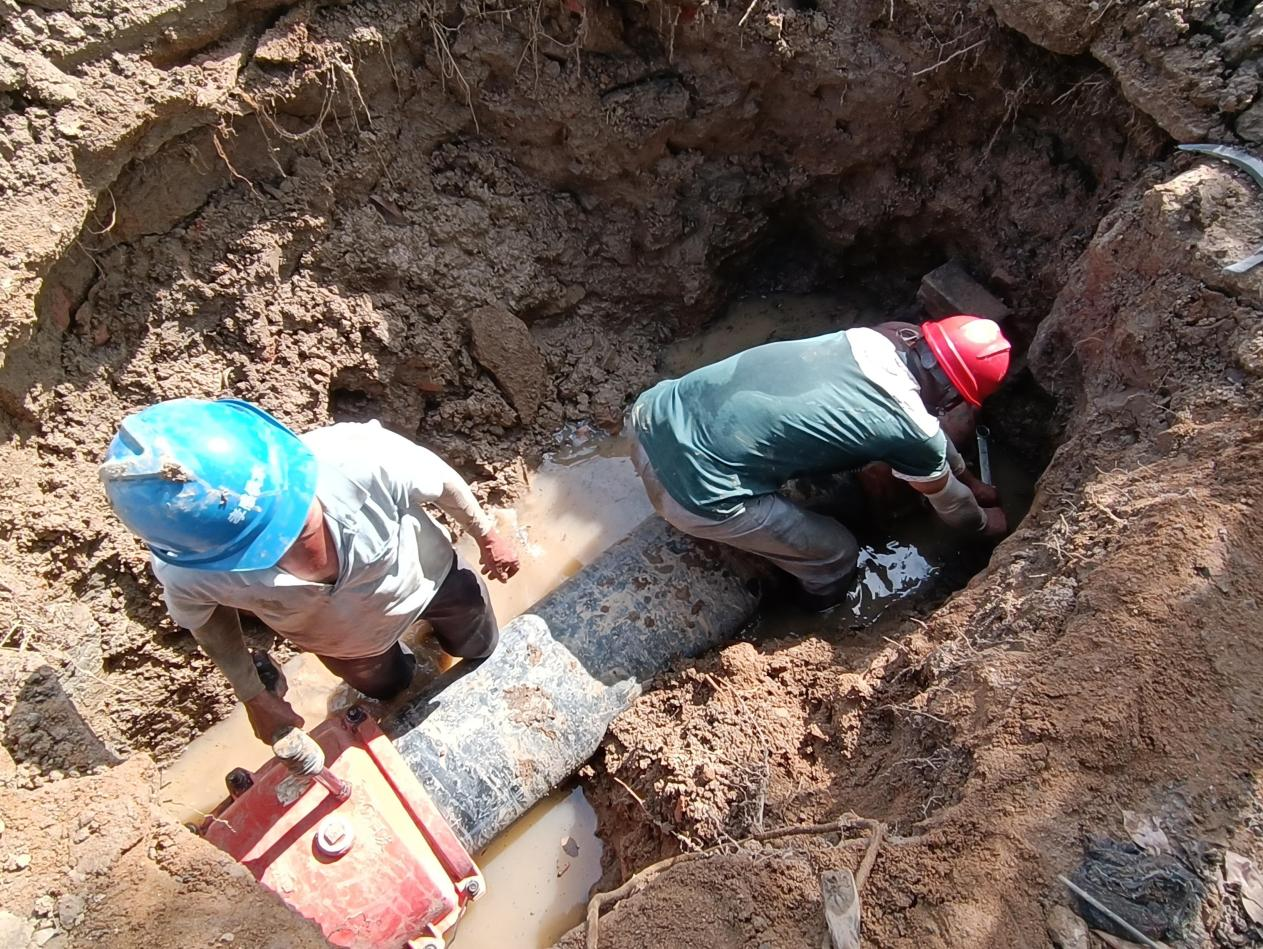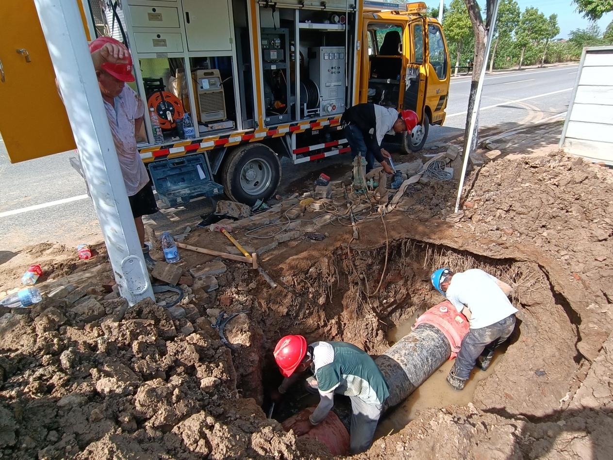 正值三伏天,天氣炎熱,氣溫高達40度。搶修人員絲毫不懼酷熱,他們在做好高溫防護后輪番上陣,有序推進搶修工作。經過挖掘、清理,作業坑成型,破損的DN400管道露出水面。隨后,搶修工作緊鑼密鼓展開。經過近8小時的奮戰,于當天下午4點完成了搶修任務,從最大程度上減少了對附近居民及工商業用水造成的影響。