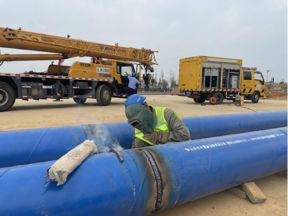 此次管線遷改共需對2條道路(復(fù)興大道、縱九路)4個路口共計(jì)1600余米的供水管線進(jìn)行遷改,該工程工期短、地下管線情況復(fù)雜,施工難度教高。為高效配合完成京港澳高速公路改擴(kuò)建工程,全力保障復(fù)興大道、縱九路及周邊企業(yè)、用戶正常用水,公司克服一切困難,對高速擴(kuò)建施工實(shí)施24小時全天候配合保障,并提前一個月組織專業(yè)技術(shù)人員多次進(jìn)行現(xiàn)場踏勘,細(xì)化管線施工連接點(diǎn)位置、停水時間、焊接點(diǎn)位和方式,制定周密管線遷改接水方案,為新舊管道連接敷設(shè)做好了充足準(zhǔn)備。