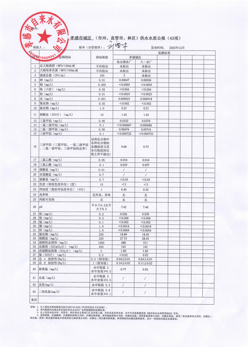 2025年12月水質(zhì)報(bào)告