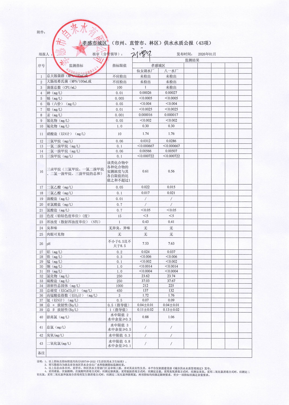 2026年1月水質(zhì)報(bào)告