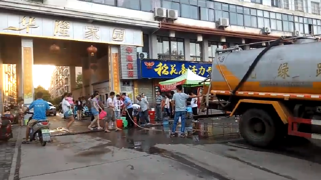 由于取水車出水口位于底盤下,不方便控制,公司現(xiàn)場工作人員特地接裝了一條軟管,幫助居民接水。前來接水的小區(qū)居民較多,工作人員一邊安排取水車不停往返取水,一邊堅(jiān)守在現(xiàn)場維持秩序,還抽空幫助行動(dòng)不便的老人送水上樓。前來接水的居民見此情形,也紛紛舉起大拇指點(diǎn)贊。